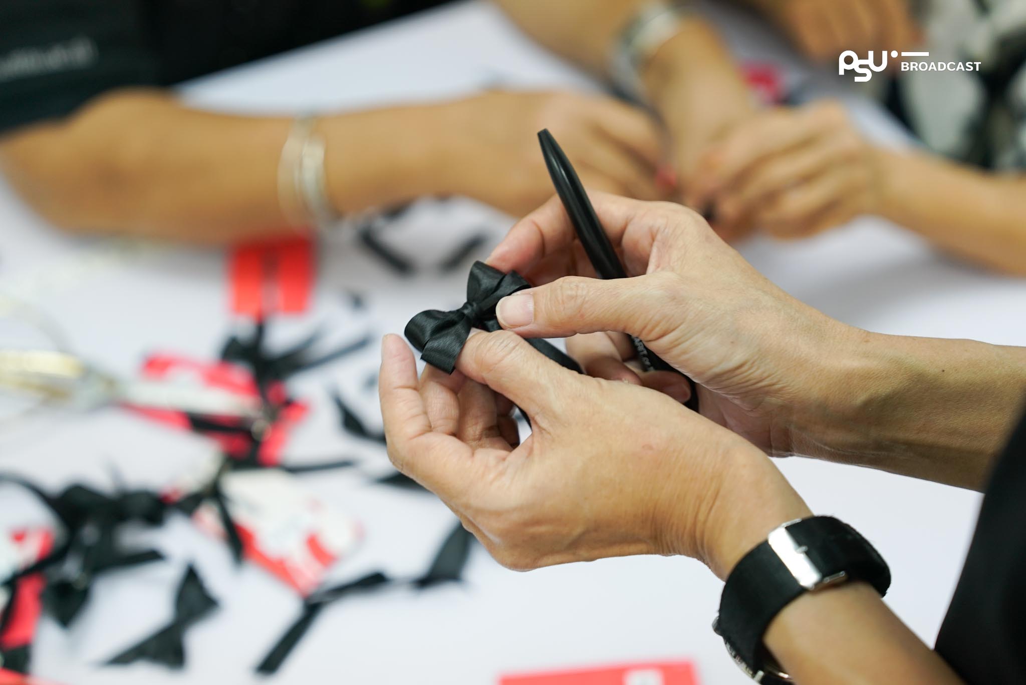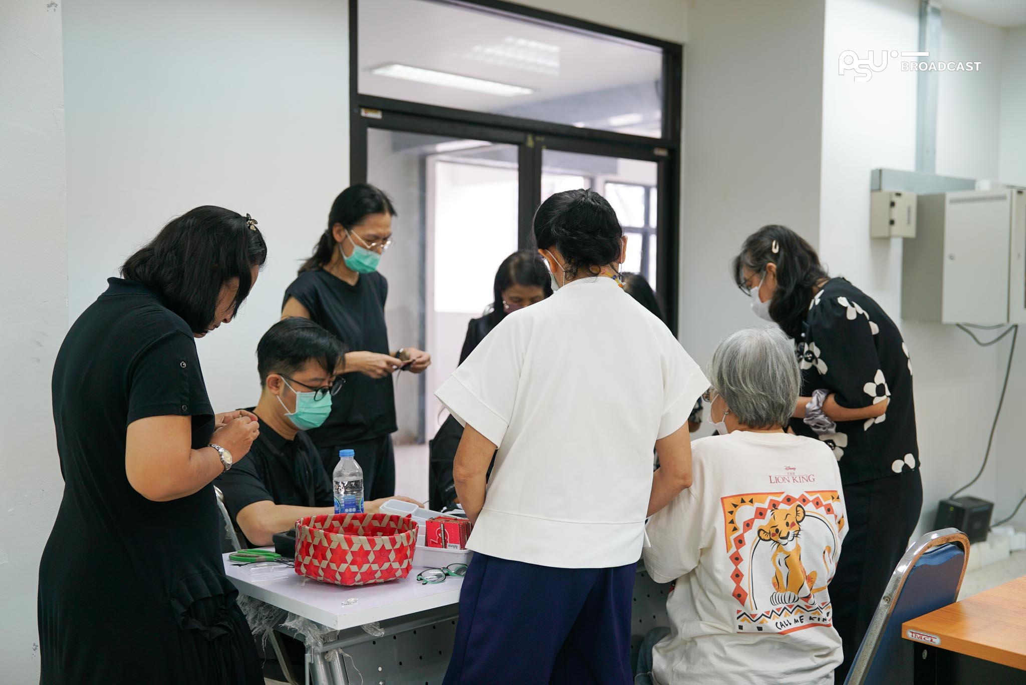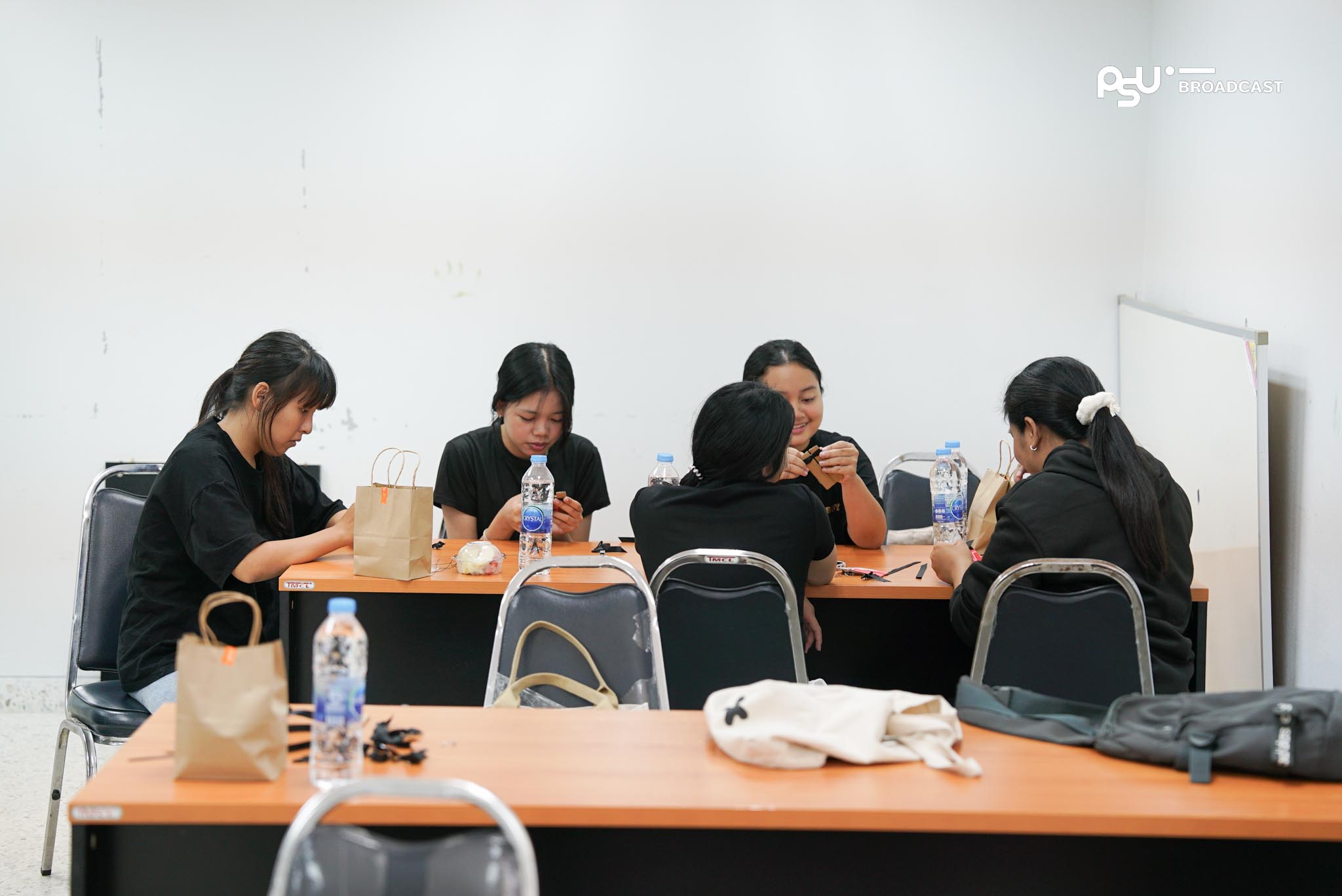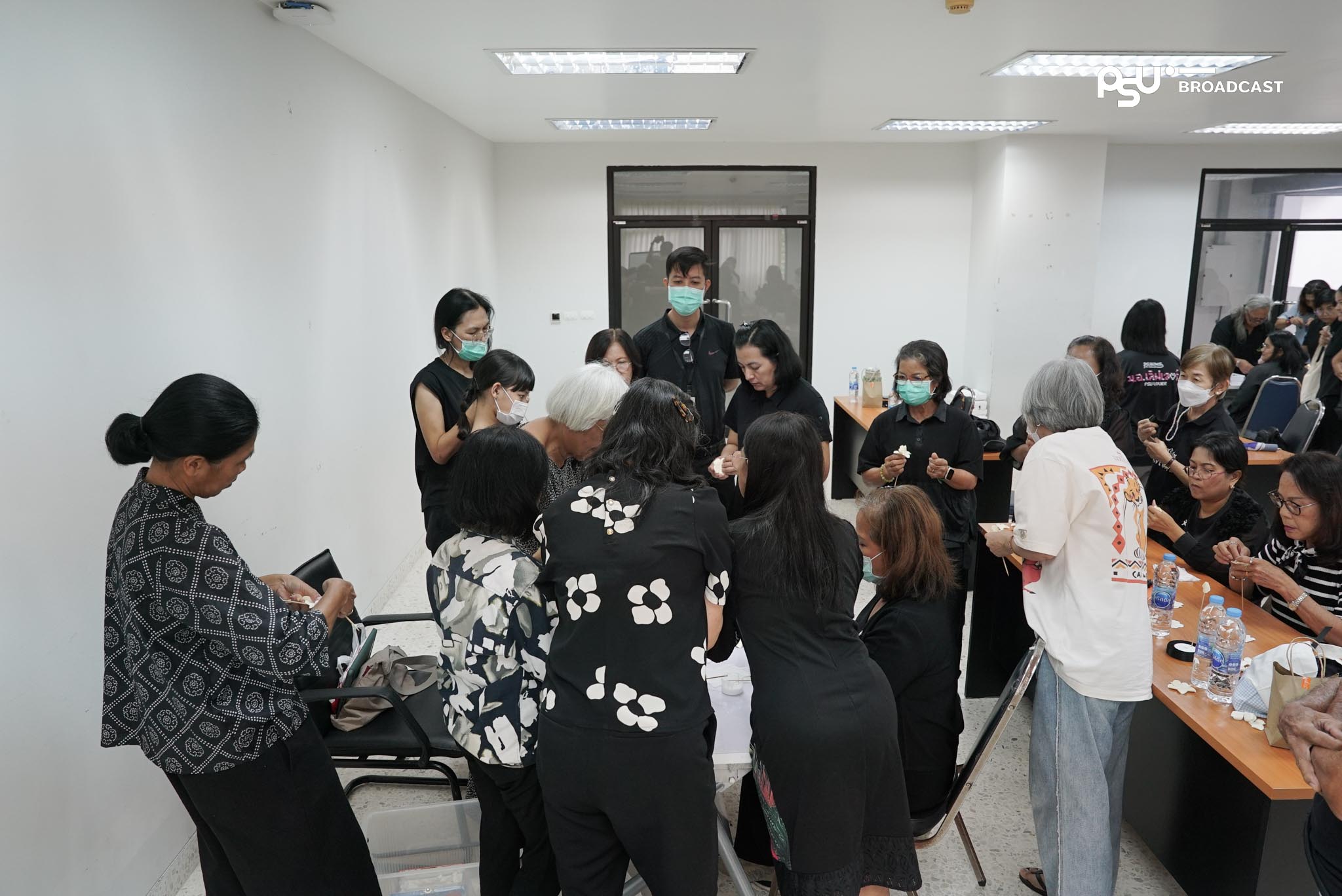 บรรยากาศกิจกรรมประดิษฐ์ “ริบบิ้นโบไว้ทุกข์” เพื่อถวายความอาลัยและน้อมสำนึกในพระมหากรุณาธิคุณสมเด็จพระนางเจ้าสิริกิติ์ พระบรมราชินีนาถ พระบรมราชชนนีพันปีหลวง (8 พฤศจิกายน 2568) ที่ห้องหมากกระดาน ชั้น 2 อาคารกีฬาและนันทนาการ ศูนย์กีฬาและสุขภาพ มหาวิทยาลัยสงขลานครินทร์ วิทยาเขตหาดใหญ่