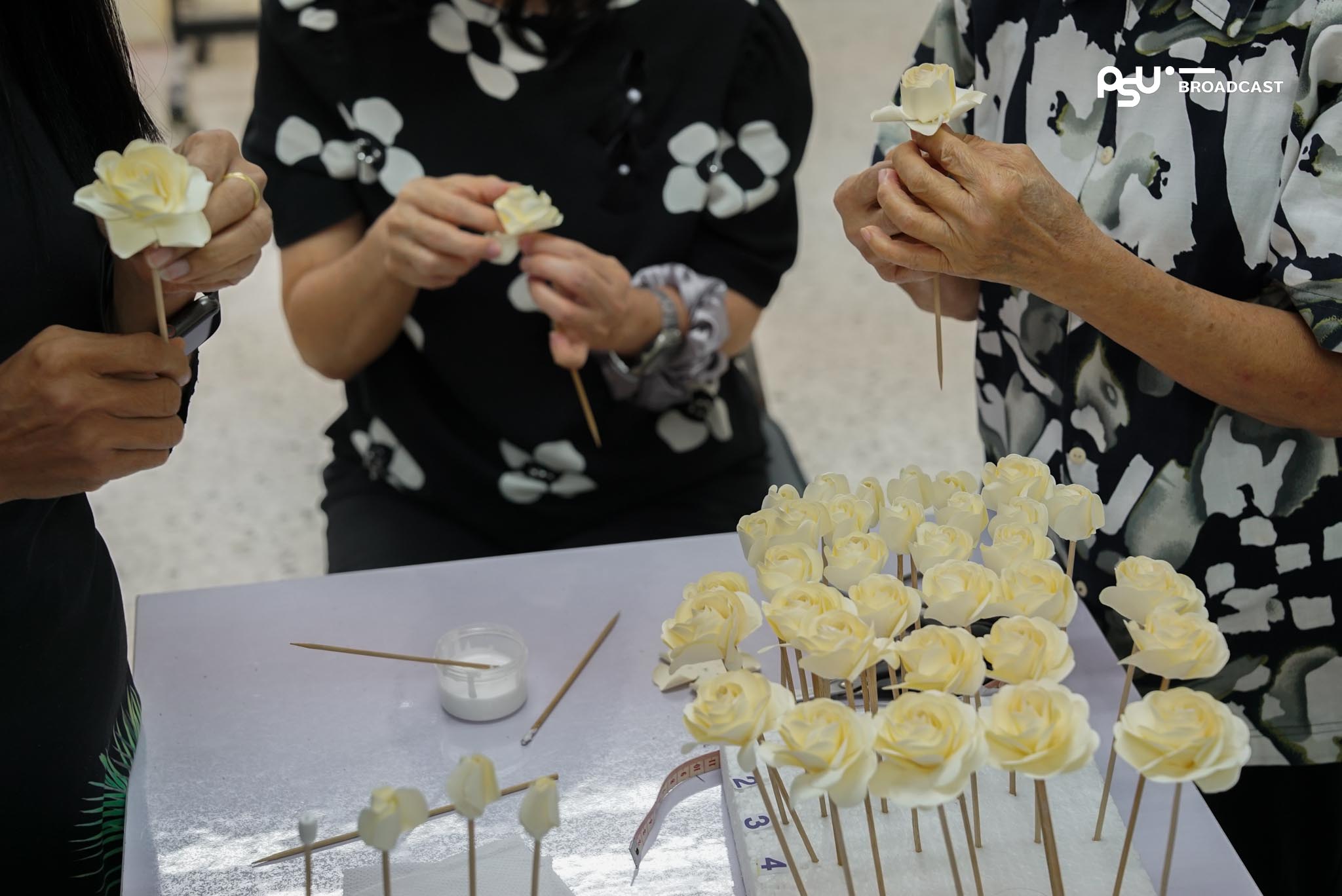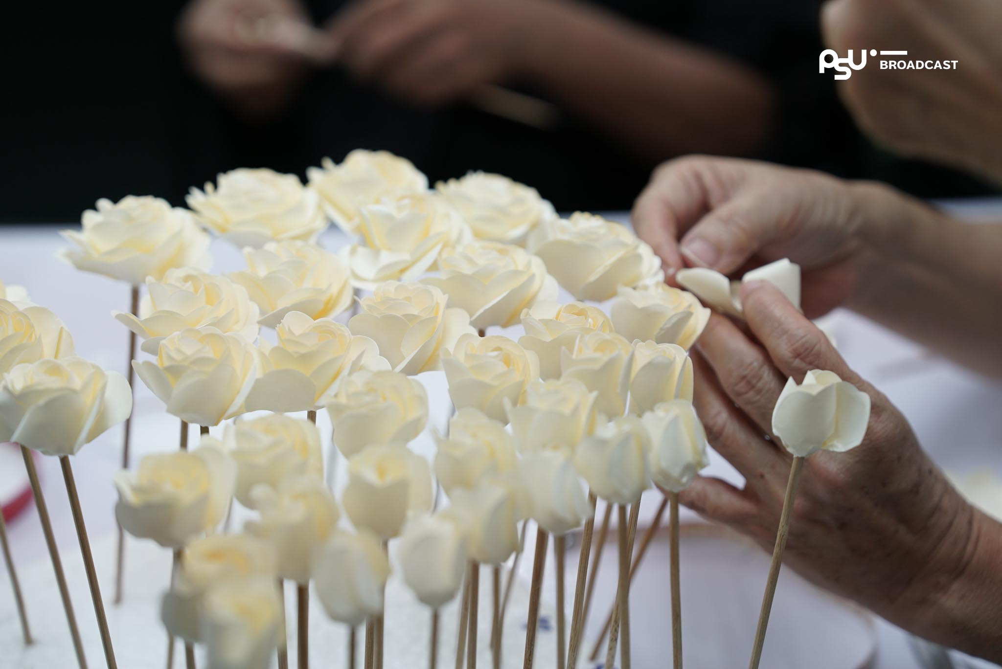 สถานีวิทยุ ม.อ.หาดใหญ่ ศูนย์กิจการนานาชาติและสื่อสารองค์กร มหาวิทยาลัยสงขลานครินทร์ จัดกิจกรรมประดิษฐ์ “ริบบิ้นโบไว้ทุกข์” เพื่อถวายความอาลัยและน้อมสำนึกในพระมหากรุณาธิคุณสมเด็จพระนางเจ้าสิริกิติ์ พระบรมราชินีนาถ พระบรมราชชนนีพันปีหลวง สอนโดย คุณครูยุพิน แสงประดับ และ คุณครูสมบุญ กมลศรี มีผู้เข้าร่วมกิจกรรมรวม 30 คน นอกจากนี้ยังมีการสอนทักษะปิดท้ายเกี่ยวกับการทำดอกไม้จันทน์อีกด้วย กิจกรรมนี้อบรมฟรีไม่มีค่าใช้จ่าย และภายหลังเสร็จกิจกรรมจะนำริบบิ้นโบไว้อาลัย แจกให้กับประชาชนทั่วไปต่อไป