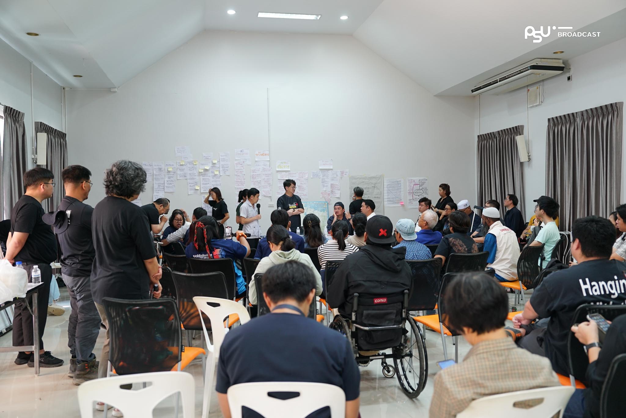 วันพฤหัสบดี ที่ 4 ธันวาคม 2568 เวลา 10.00 น. คุณสมบัติ บุญงามอนงค์ หรือ บก.ลายจุด ประธานมูลนิธิกระจกเงา นำประชาชนและหน่วยงานที่มีส่วนเกี่ยวข้องร่วมหารือกันเพื่อสะท้อนภาพปัญหา ความต้องการของประชาชนที่ได้รับผลกระทบในมิติต่าง ๆ พร้อมหาวิธีการเชื่อมทุกองค์กร ร่วมทำงานแก้ไขปัญหา วางแนวทางการฟื้นฟูวิกฤตน้ำท่วมหาดใหญ่อย่างเป็นระบบ ผ่านการก่อตั้ง War Room ภาคประชาชน ในหัวข้อ “การฟื้นฟูเมืองหาดใหญ่หลังเหตุการณ์น้ำท่วมเมือง” มีผู้เข้าร่วมการประชุมกว่า 60 คน ณ กองอำนวยการภาคประชาชนส่วนหน้า ศูนย์การศึกษาเพื่อสันติภาพ สถาบันสันติศึกษา มหาวิทยาลัยสงขลานครินทร์