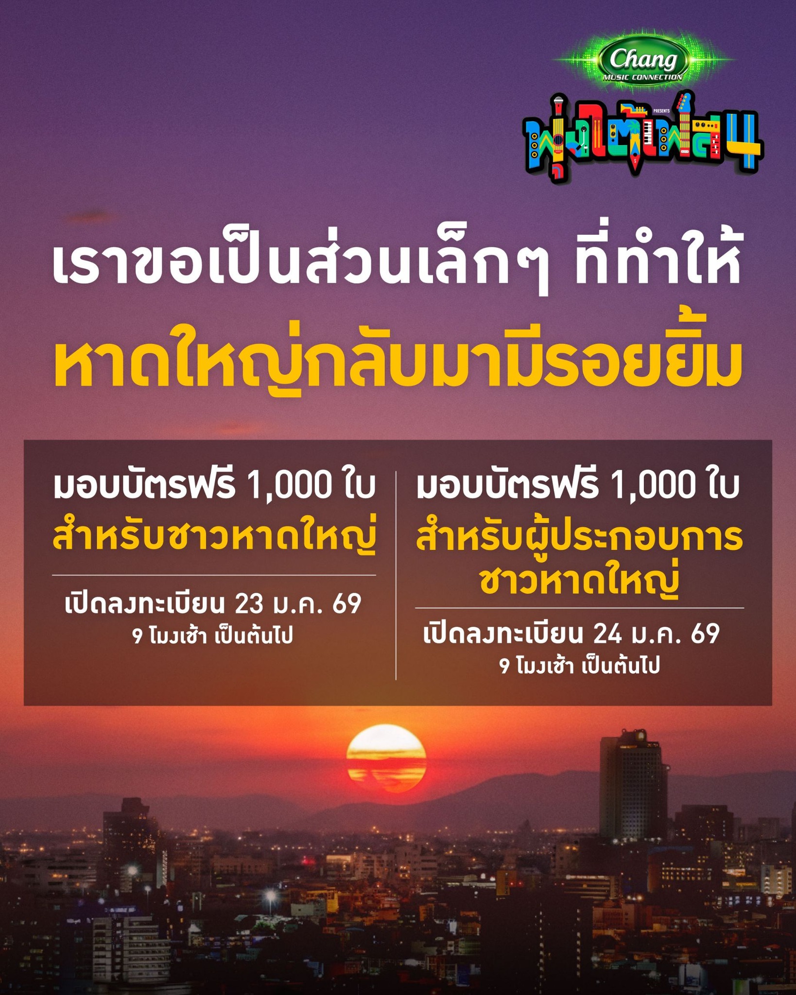 การจัดงานในครั้งนี้เกิดขึ้นหลัง อ.หาดใหญ่และพื้นที่ภาคใต้ผ่านเหตุการณ์อุทกภัยในช่วงปลายปี 2568 จึงเป็นอีกหนึ่งในความตั้งใจที่จะใช้เทศกาลดนตรีช่วยส่งเสริมเศรษฐกิจและฟื้นฟูอารมณ์ กำลังใจของผู้คนในพื้นที่