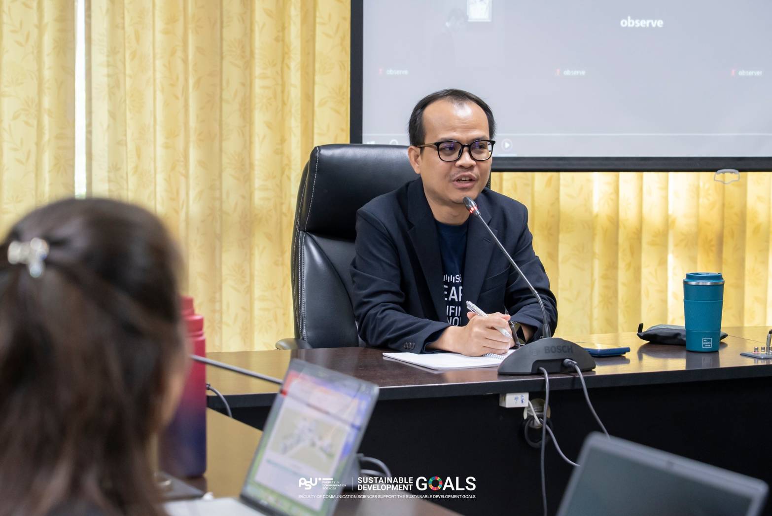 ด้านผู้ช่วยศาสตราจารย์ ดร.ภีรกาญจน์ ไค่นุ่นนา คณบดีคณะวิทยาการสื่อสาร ให้ข้อมูลว่า การที่คณะวิทยาการสื่อสารได้รับรองการรับรองมาตราฐานสำนักงานสีเขียว ระดับ Green Office Platinum ประจำปี 2568 เป็นหน่วยงานกลุ่มแรกของการรับรองในระดับ Green Office Platinum ของประเทศ ซึ่งสะท้อนให้เห็นว่าการดำเนินงานภายใต้มาตรฐานสำนักงานสีเขียวของคณะมีความต่อเนื่องในเชิงนโยบาย ที่ได้ริเริ่มมาตั้งแต่ผู้บริหารชุดที่ผ่านมา ตั้งแต่การริเริ่มกิจกรรมด้านสิ่งแวดล้อมมาตั้งแต่อดีต จนกระทั่งมีการนำแนวทางของสำนักงานสีเขียวมาใช้ดำเนินการเมื่อปี 2562 เป็นต้นมา จนกระทั่งได้รับการรับรองในระดับสูงสุดของกรมการเปลี่ยนแปลงสภาพภูมิอากาศและสิ่งแวดล้อม หลังจากที่ได้เข้ารับการประเมินมาตรฐานสำนักงานสีเขียวเมื่อเดือนพฤศจิกายน 2568 ที่ผ่านมา